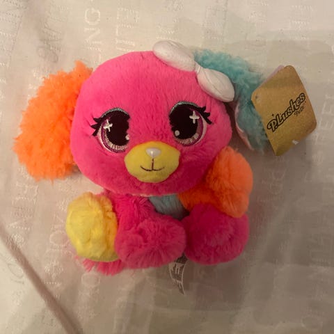 Värikäs pehmo, laput kiinni. Korkeus n. 17cm. Tästä jollekin pienelle pukinkonttiin!