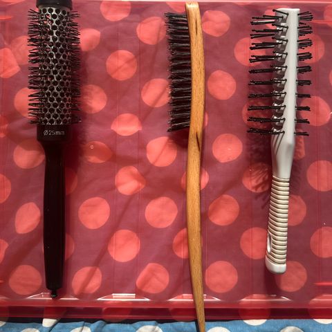 Cailapin pyöröharja, pituus 23,5cm ja halkaisija 2,5cm. Käyttämätön mutta juuri pesty joten väri hieman lähti samalla.