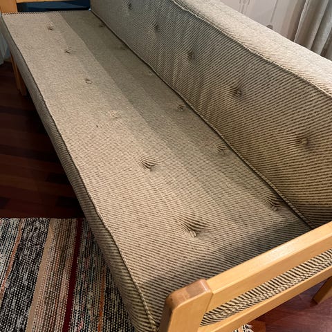 Jo elämää nähnyt puinen vuodesohva. Vuode-osuus 200x160cm.