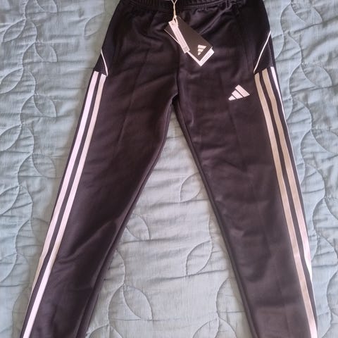 Liikuntatreeneissä käytetyt housut. Materiaali miellyttävä 73 % polyamidi, 27 % elastaani. Kaksi taskua sivuissa. Legginsejä löysempi malli, ks. kuvat.