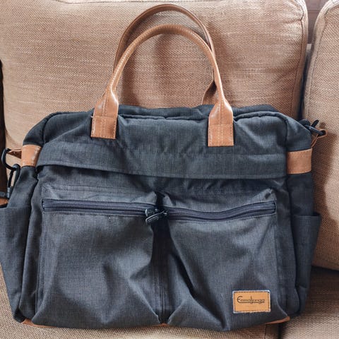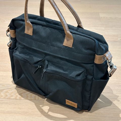 Emmaljunga lastenrattaiden musta hoitolaukku, mukana kaksi pakkausta Libero-lastenvaippoja ja pehmustettu alusta. Hoitolaukussa useita taskuja ja säädettävä olkahihna, sopii lastenrattaiden kanssa käytettäväksi. Vain 2 kertaa käytetty.