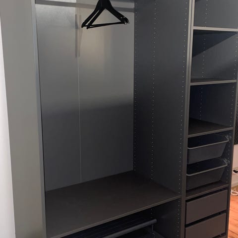 Platsa, ei Pax. Hyväkuntoinen pari vuotta käytössä ollut, uudenveroinen Ikean tukeva vaatekaappi. Alla laatikot, sisällä molemmin puolin 3 hyllyä.