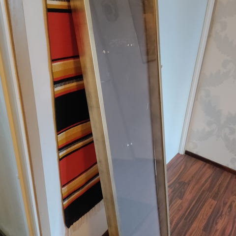 Ollut pari vuotta seinällä ja jonkun aikaa säilytyksessä. Ei enään sopinutkaan minnekkään.