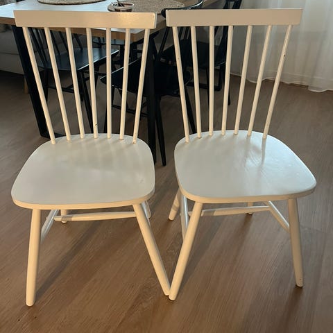 Myydään 4 kpl vanhoja pinnatuoleja. Vähän lenuaa, mutta ehjiä. Selkänojan korkeus 78 cm, istuinosan 46 cm, leveys 46 cm. 10 euroa kappale. Tarjoa! Vain nouto.