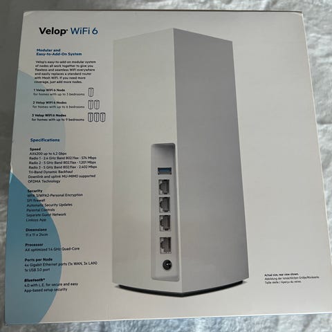 Linksys Velop reititin. Valkoinen väri, mukana virtalähde. Ollut pitkään kaapissa, joten hetkeen ei ole ollut käytössä.