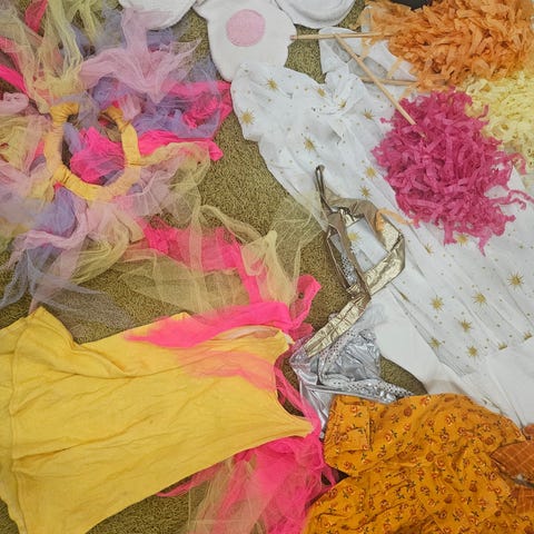 Paljon rooliasuja leikeihin. Melko kuluneita osa. Vaihtuu suklaalevyyn.