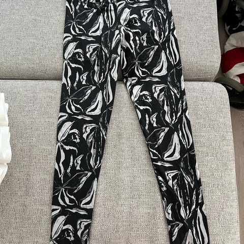 Siistit ja ehjät urheilu leggingsit, lahkeissa osittain verkkoa. Tukevat päällä