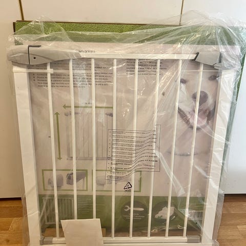 Oviaukkoon tarkoitettu portti, johon on lisätty nippusiteillä vanerit näköesteeksi. Ne saa siis helposti pois. Lapsilukko on. Nouto Hervannasta.