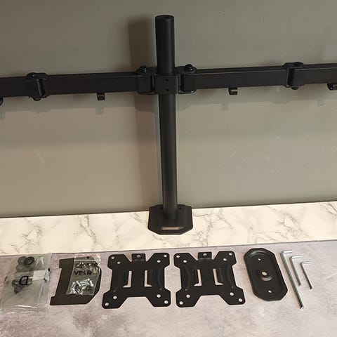 Perus siisti kuntoinen ja ehjä teline kolmelle näytölle.