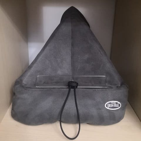 Myydään tummansininen The Bookseat kirjatuki lukemisen avuksi.