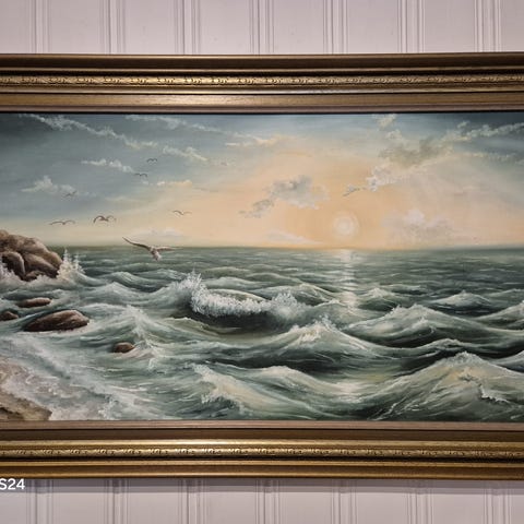 Öljyvärimaalaus, signeeraus Anja Hallikainen, vuosi 1985, koko 91 cm x 66 cm, kehystetty