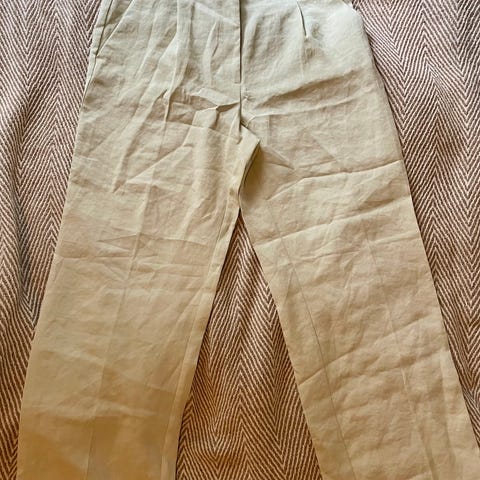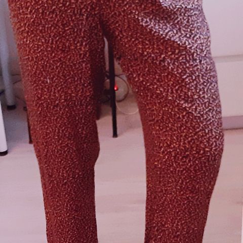 Ohuet käyttämättömät viskoosihousut, väri tummansininen ja ohuita vaaleampia raitoja. Housut ovat kokoa 52 ja ovat pitkät (vyötäröltä lahkeeseen 110 cm). Kuvassa housuja ei ole silitetty. Housut menisivät hyvin myös juhlavampaan tilaisuuteen.