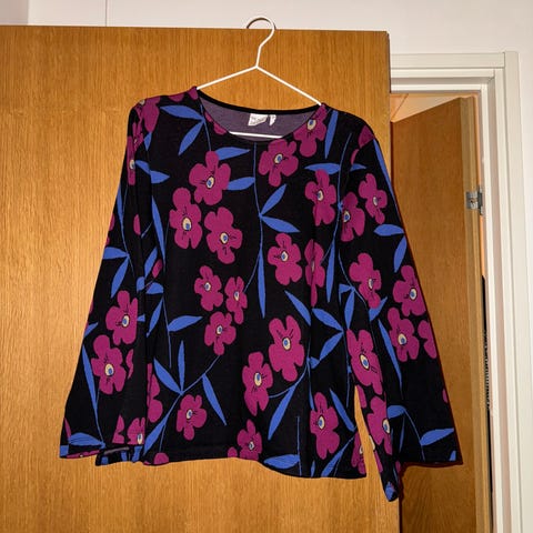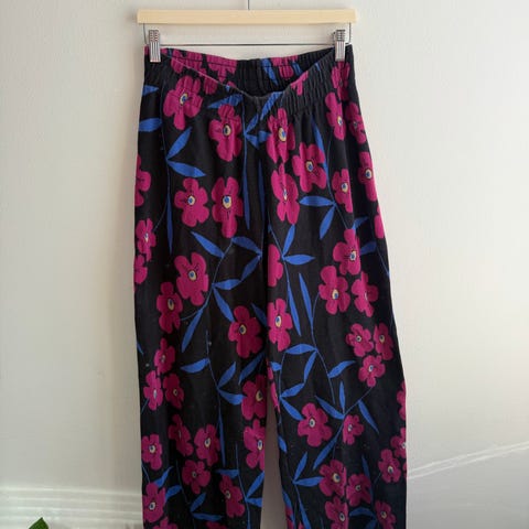 Mainio mysterious blooms jacquard housut puuvillaa, leveät lahkeet. Koko XS (mutta reilua mitoitusta, joten menee myös S-koolle). Vain sovitettu, kunto moitteeton.