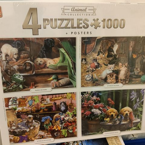 Kaksi palapelilaatikkoa, joissa molemmissa kolme eri palapeliä.