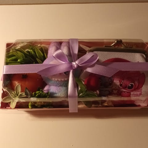 Labubu saippu ja Stitch lompakko