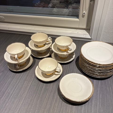 Arabia Gilda kahvikupit ja lautaset 4 kpl kultakoristeiset