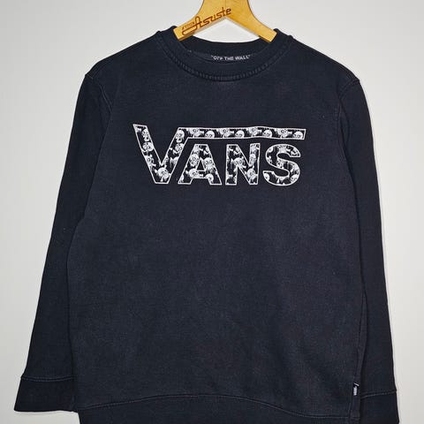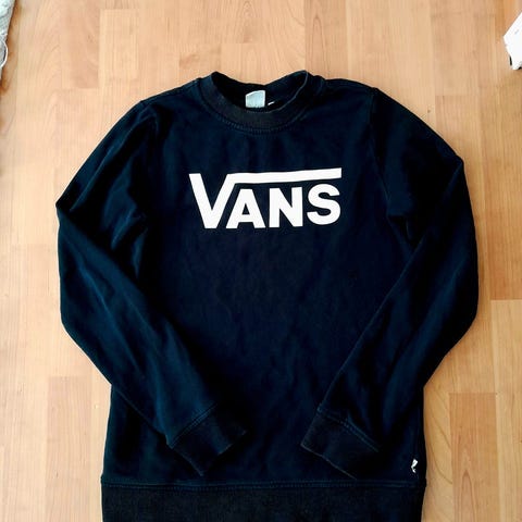 Myynnissä myös musta samankokoinen Vans collegepaita.