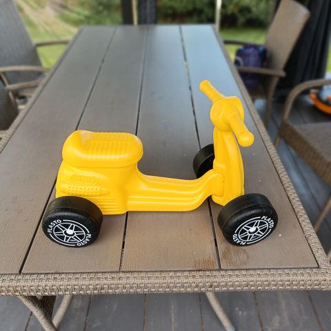 Plasto musta potkumopo hiljaisilla pyörillä, vielä paketissa eli täysin käyttämätön.