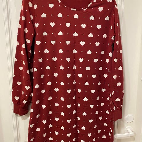 Myydään nanson kaunis viininpunainen pitkä Kissa yöpaita. Yöpaidan kainalo kainalo mitta on 55cm.