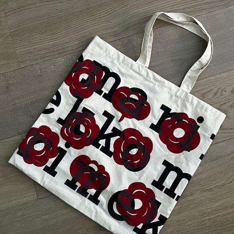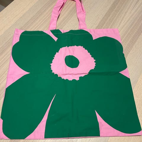 Marimekko kangaskassi. Kassi on valmistettu kestävästä kankaasta ja siinä on iso kukkakuosi.