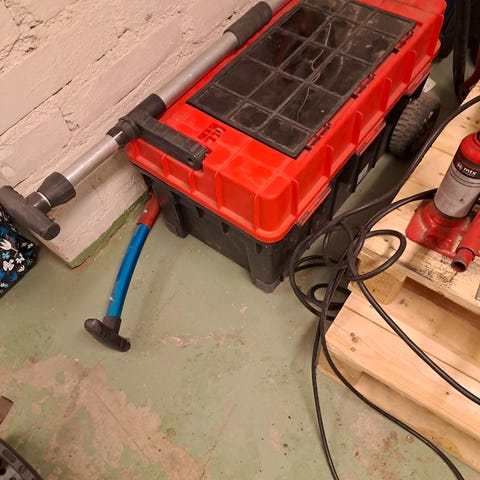 Myydään laatikollinen työkaluja 10kpl lattia-asennus puristimet 4kpl Veribor imukuppikiinnike puristimille, puinen pakki, Stanley "Uusi" vesivaaka, villaveitsi, polvisuojat, luotilanka "Uusi", sidonta hihnoja, 2kpl lyöntirautoja ....