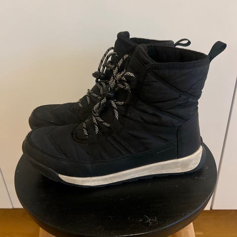 Myydään Sorel Explorer Carnival talvikengät, mustat, koko 38 (sisämitta 24 cm).