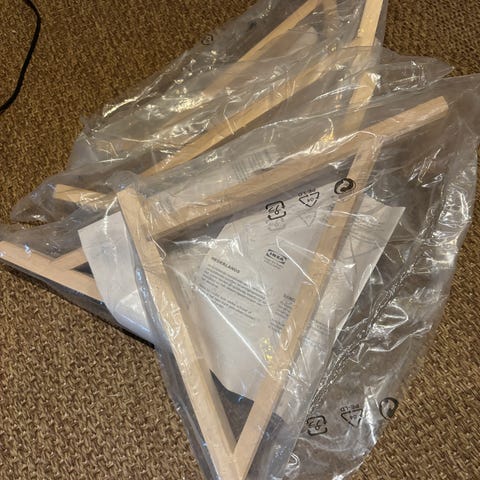 Ikean avaamaton pakkaus hyllynkannakkeita nimeltään Ekby Bjärnum. Asetetaan hyllyn päätyihin, jonka koko on 28x2,5cm (kts. kuvat). Harjattua metallia.