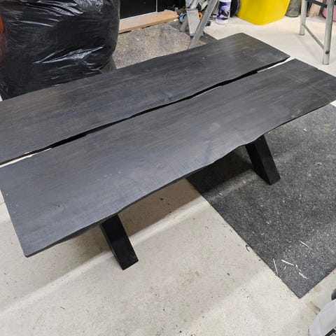 Akaasia puuta oleva sohvapöytä. Metalliset taivutejalat. Hyvä kunto; oksakohdassa pieni rako, ja kolme naarmua (naarmut vain esteettinen vaiva, katoaa näkyvistä luultavasti öljyämällä). Näistä kuvat. Painava mööbeli. Vain nouto, maksu mobile pay tai käteinen.