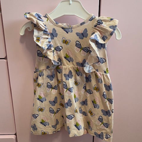 Hakusanat: toppimekko, kesämekko, tyttöjen mekko, perhos mekko valkoinen mekko, perhos kesämekko, tyttöjen kesä mekko, vihreitä perhosia