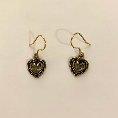 Kalevala Korun pronssiset Talon sydän korvakorut. Sydämen koko n. 1.1 cm x 1.1 cm. Leima kk.