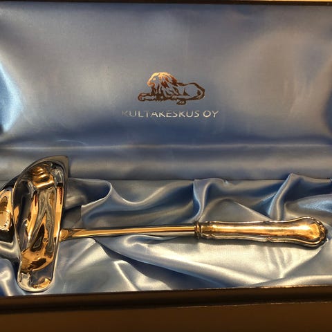 Myydään hopeiset chippendale liemi- ja kastikekauhat. Yhdessä tai erikseen. Iso kauha varren pituus 26 cm. Pienempi kauha 16 cm. Tosi siistissä kunnossa. Pakettihintaan edullisesti. Postitus onnistuu.