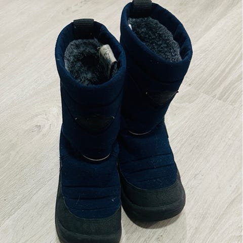 Lasten talvikengät. Käytetty kunto mutta täysin ehjät vielä, ja hyvät seuraavalle käyttäjälle. Pinta keinonahkaa.
