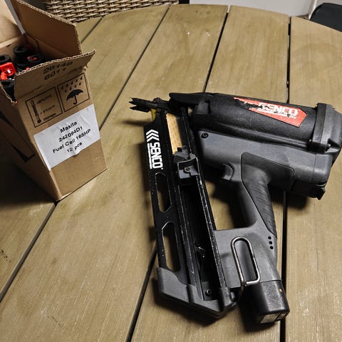 Ei ole ollut ammattikäytössä, ulkoasu saatu varastossa pyöriessä, sisuksiltaan kuitenkin reilusti alle 10 000 naulaa ammuttu.
