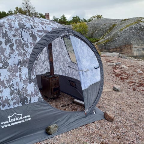 Nexi perhemallin telttasauna, väliseinällä erotettavissa kaksiosaiseksi.
