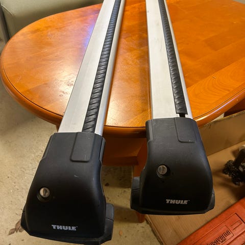 Thule WingBar Edge kattotelineet BMW 5-sarja F10. Ollut käytössä muutaman talven. Avaimet hukkunut auton vaihdossa, mutta Thulelta saa uuden avain-/lukkosarjan ostettua.