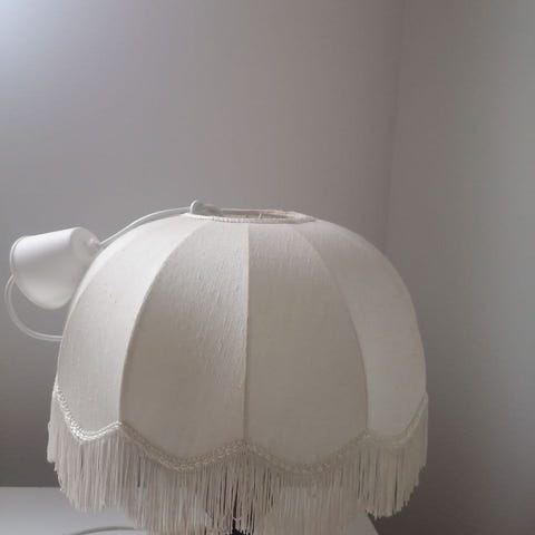 Musta punottu johto, pistoke, betoninen kanta ja filamenttilampou. Hieno yhdistelmä