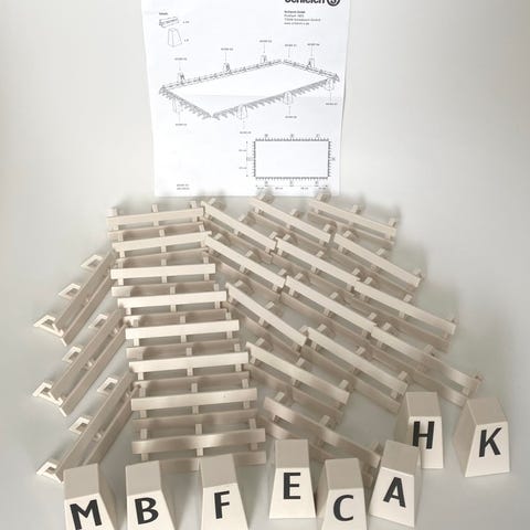 Schleich kouluratsastuskenttä, pieniä käytön jälkiä löytyy. Sisältää 8 kpl kirjaimia ja 22kpl reunapaloja. Viimeiset 2 kuvaa otettu netistä.
