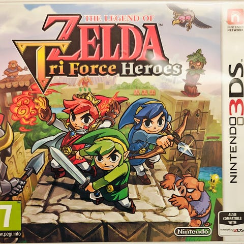 Nintendo The Legend of Zelda: Tri Force Heroes on Nintendo 3DS -pelijärjestelmälle tarkoitettu seikkailupeli. Peli sisältää yhteistyöpelattavuuden ja on suunnattu 7-vuotiaille ja sitä vanhemmille pelaajille.