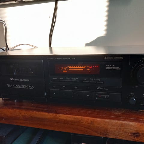Hyväkuntoinen ja siisti JVC:n tuplakasettidekki. Kaikki vetohihnat vaihdettu (6 kpl), äänipäät puhdistettu ja demagnetoitu. Nauhanopeudet säädetty. Muuten täysin kunnossa mutta tuplanopeustallennus ei toimi. Kansi päällystetty dc-fix päällystevinyylillä. Rca-liitännät takana ja mikrofoniliitännät etupaneelissa. Nouto tai postitus. mmm.