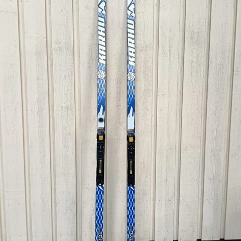 Karhu Optigrip, 197cm, pitopohjasukset. Siteet Salomon SNS. Exel sauvat 145cm. Olleet käytössä n. 80kg/n.180cm henkilöllä. Vähän hiihdetty.