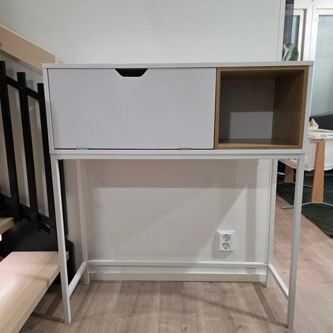 Kompakti Englantilainen sivupöytä myytävänä. Pöytä on jatkettava ja löytyy yksi vetolaatikko. Takana oleva on koriste. Runko ehjä ja tukeva. Ajan tuomia jälkiä kannessa. Ei hajuja.