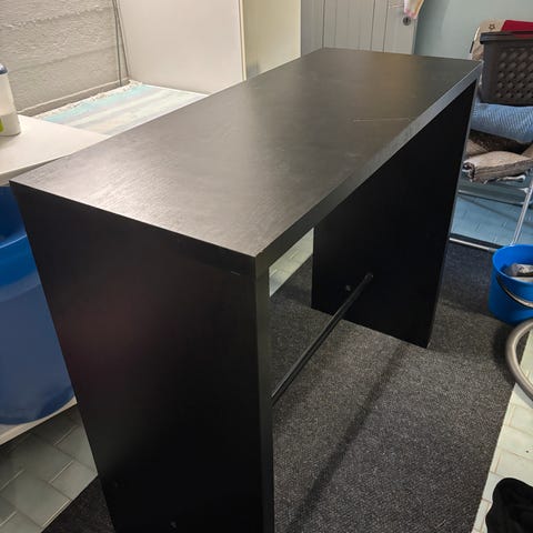Puinen baaripöytä. Pientä käytön jälkeä, mutta yleisilme siisti. Tuoleissa on osassa jälkiä kissan kynsistä, ne saa ottaa tai jättää, hinta on pelkälle pöydälle. Tarjoa jos hinta ei miellytä!