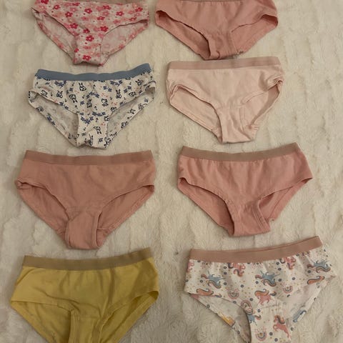 H&M lasten alushousut ja pikkarit settinä 98-104 koossa. Tosi siistejä ja vähän käytettyjä. Nudeissa pikkarimallisissa pesussa ainakin kuminauha ottanut sävyä. Osa saattaa puolestaan olla käyttämättömiä. Osassa nimitarra lapussa ja osasta lappu leikattu pois. 18kpl. Parhaat pikkarit!