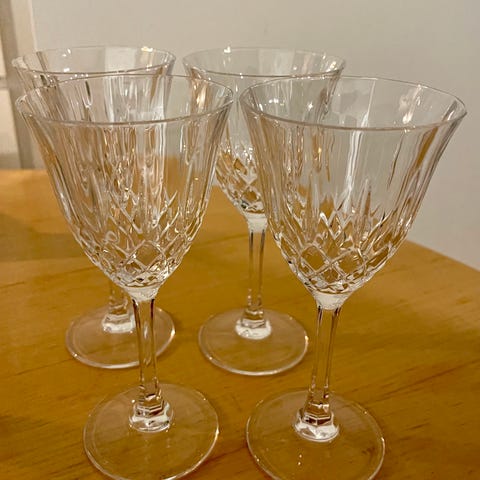 Vivaldin pienet viinilasit 5 kpl. Kaunis kuvioitu malli, sirot jalat. Hyväkuntoiset, ei säröjä tai lohkeamia. Myynnissä myös saman sarjan muita laseja.