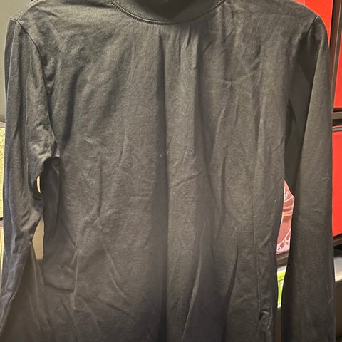 Jess musta paita korkealla kauluksella, eli poolopaita.