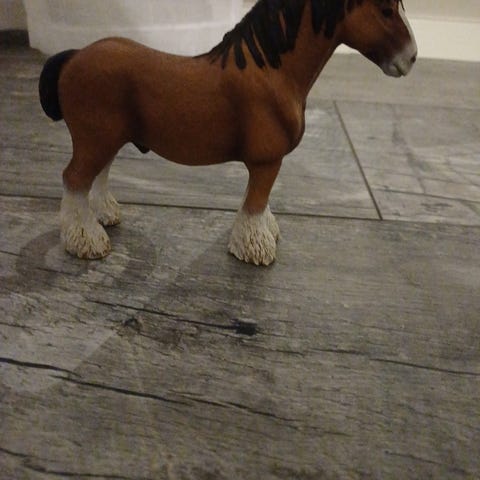 Hevosessa jonkin verran kulumaa, joka näkyy kuvissa