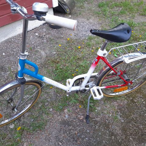 Mustaksi maalattu viime kesänä. Ohuet renkaat eivät alkuperäiset, irti ja minusta jaljajarrussa vikaa. Yksi vaihteinen. Poljin rikki, metallii murtunut. Varaosia 80 luvun mummopyöriin mm. tarakka ja lokasuojat. Mieluiten koko pyörä kerralla pois.
