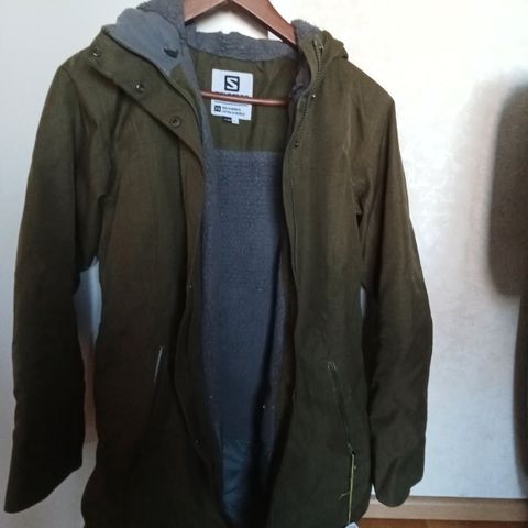Käytetty, ehjä takki. Käytön jälkiä näkyy.