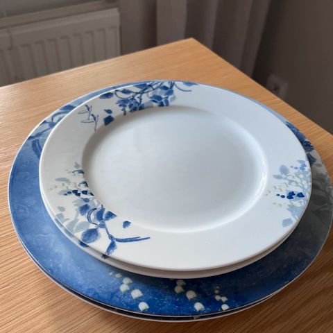 Apilanlehti Suomi 100-sarjan 2 pienempää, 2 isompaa ja 2 keittolautasta. Pienen halkaisija 21 cm, isomman 26 cm, keittolautanen 22 cm.