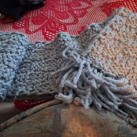 Myydään H&M luonnonvaalea pehmeä ja muhkea kaulaliina. Toisella puolella palmikkoneuloksessa kiiltävä pinta. Materiaali akryyliä. Pituus n. 180 cm, leveys 23 cm.